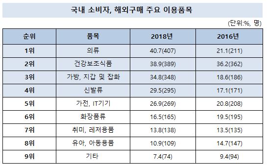 ▶ 해외직구 1위 의류, 2위 건강보조용품, 3위 가방·지갑 및 잡화
