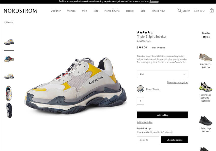링크를 눌러 상품을 둘러본 후 발렌시아가 브랜드를 눌러 더 많은 상품들을 찾아보면 됩니다.