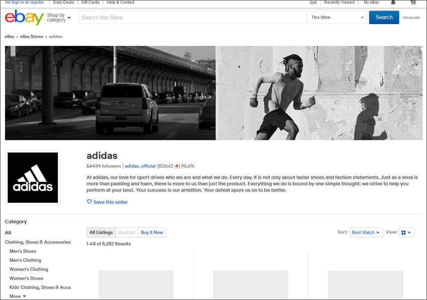 그런데, 아디다스, 퓨마, 다이슨 등 유명 브랜드에서 직접 운영하는 이베이 스토어가 따로 있습니다.