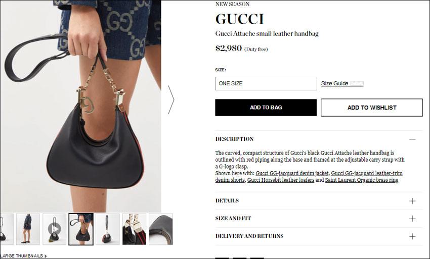 파페치 사이트에는 구찌 핸드백 등 여러 상품이 있음.