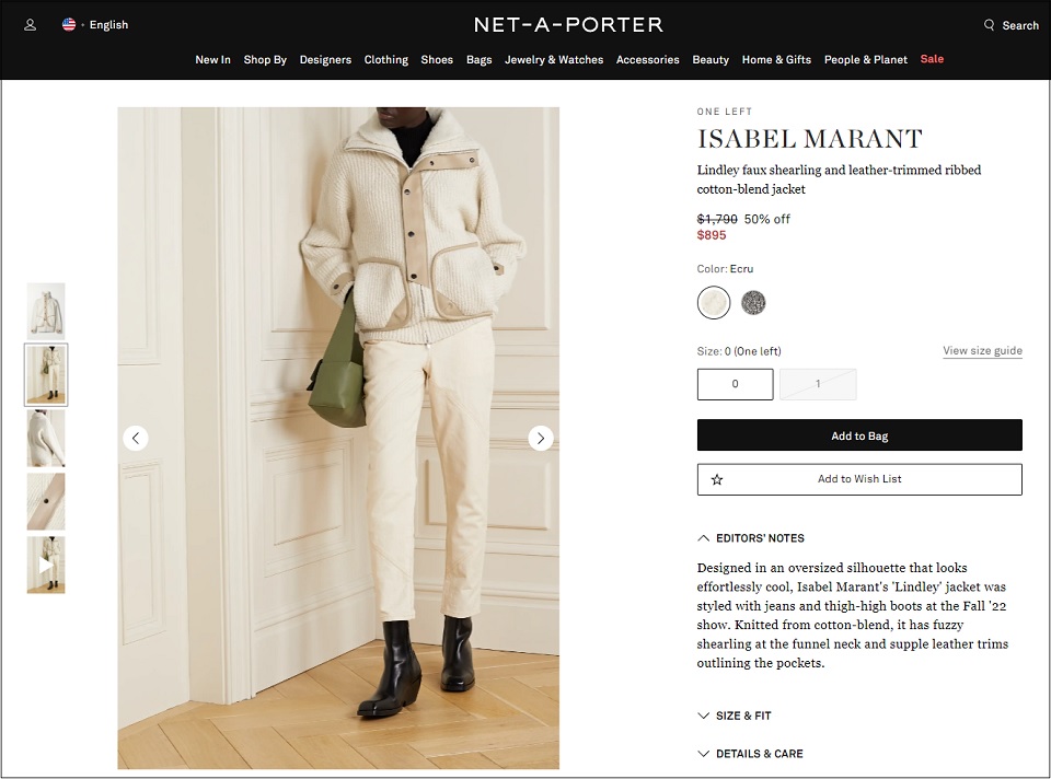 현재 네타포르테 공홈에서는 이자벨마랑 의류 및 가방, 신발, 모자 등을